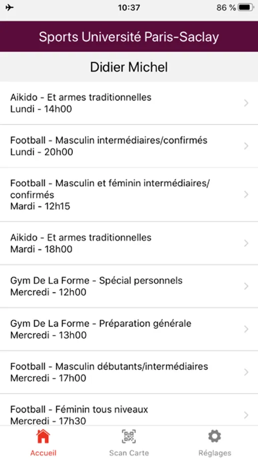 Application pour la gestion des créneaux du SUAPS de l'Université Paris-Saclay.