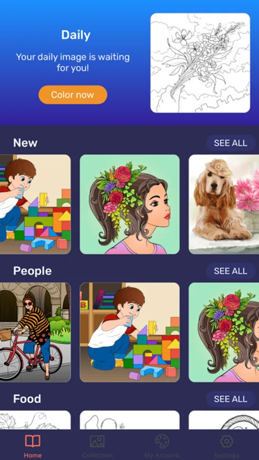 This coloring book app was made to help people find a moment of calm. Relax color or paint a portrait on the subway, color a cartoon from your home, or fill out a free oil paint by number anywhere. Easily complete beautiful painting games with this color by number app. Send fun greeting cards to friends, solve color puzzle games, or check out fun flower coloring books.