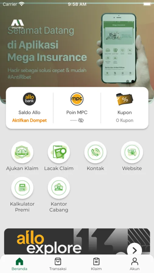 Dengan aplikasi Mega insurance, Anda dapat melaporkan klaim kendaraan, melihat berita terbaru dan banyak hal lainnya.