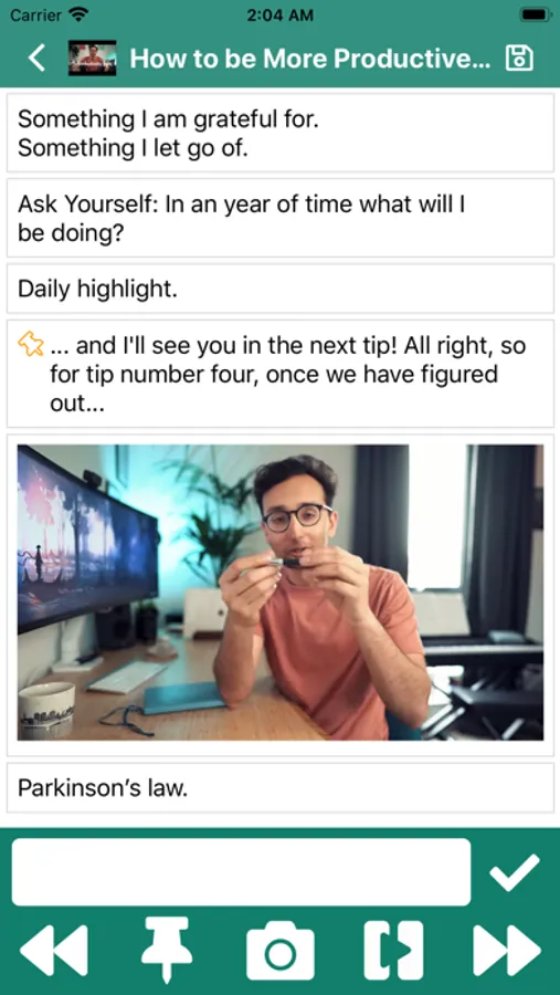 The video pauses once you start typing in the App, and it resumes once you save the note.