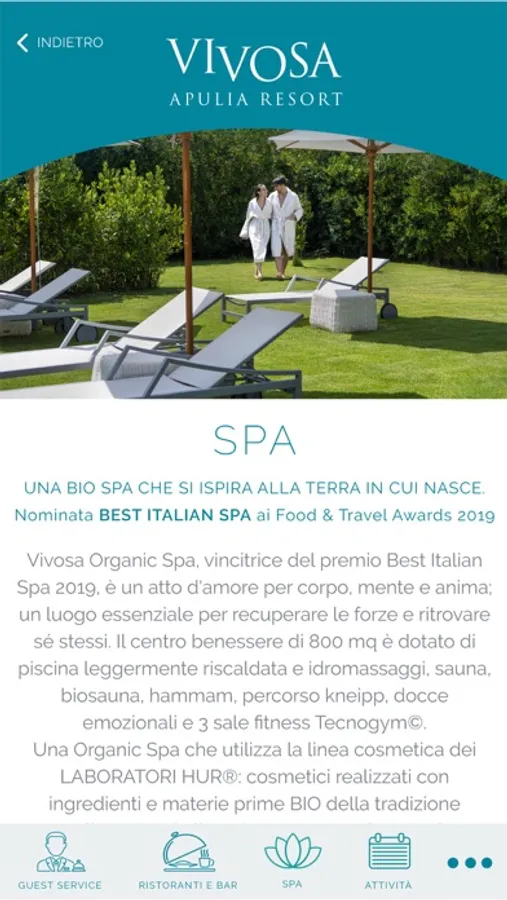 L'app ufficiale di Vivosa Apulia Resort, un Ecoresort immerso in un Parco Naturale con dune di finissima sabbia bianca e un mare cristallino nel rispetto della natura e dell'ambiente. Tramite l'app potrete scoprire tutti i servizi e le attività in programma durante il vostro soggiorno, consultare il menu dei ristoranti e dei bar presenti nella struttura, prenotare il vostro trattamento nell'esclusiva Organic Spa e le lezioni con la nostra Vivosa Fitness Crew, un team di specialisti a disposizione di chi desidera una vacanza all'insegna dello sport e del benessere, con programmi che vanno dallo spinning allo yoga, dall'hiit fit alla meditazione.