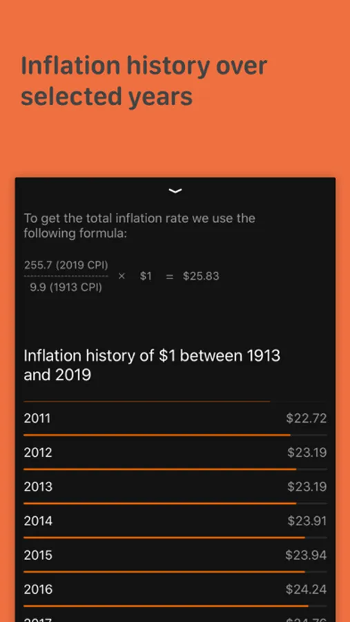 App to calculate how much the value of the US dollar has changed over time. The app calculates the inflation rate based on the real CPI values using a simple formula.