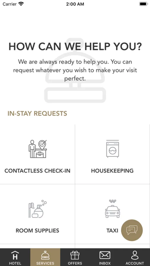 You can chat with our hotel staff regarding your guest service requests by the application and send your requests and feedback to us directly. We will be working to provide the best service instantly by evaluating the surveys regarding your experiences which we will send by the application while you are using it.