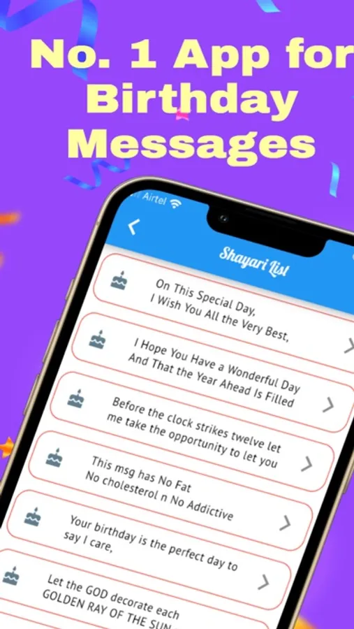 No internet connection? No problem! Our app provides the best birthday messages even without an internet connection. Enjoy seamless access to heartfelt wishes anytime, anywhere.