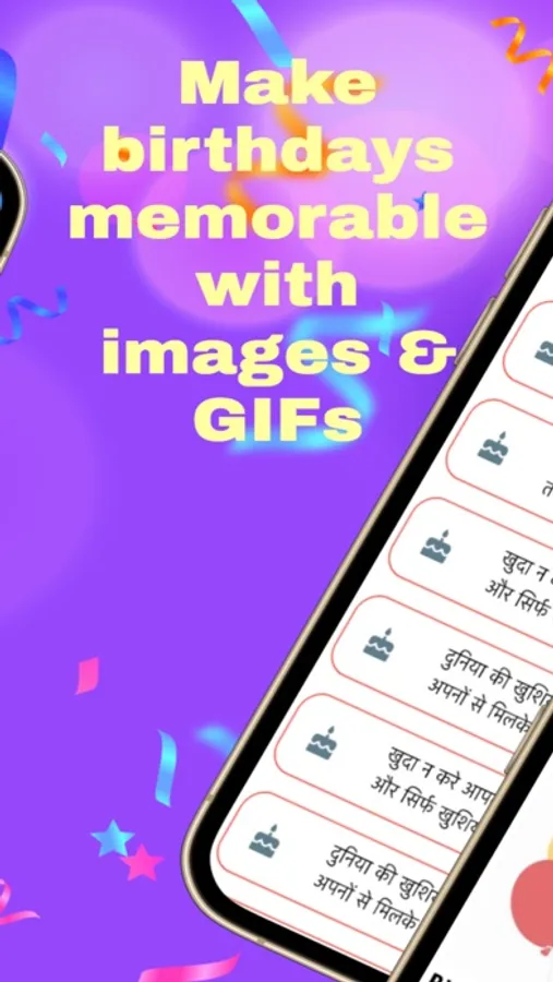 Introducing the Happy Birthday Wishes App, where you'll discover the ultimate collection of birthday shayari. Whether it's for your friends, brother, sister, or your special someone, we've got the perfect shayari to express your heartfelt birthday wishes. Our app provides an extensive range of quotes, images, gifs, shayari, and memes that can be easily sent as SMS to mobile devices or used as a new image status. Send beautiful wishes to your loved ones with our collection of birthday shayari in both English and Hindi languages.
