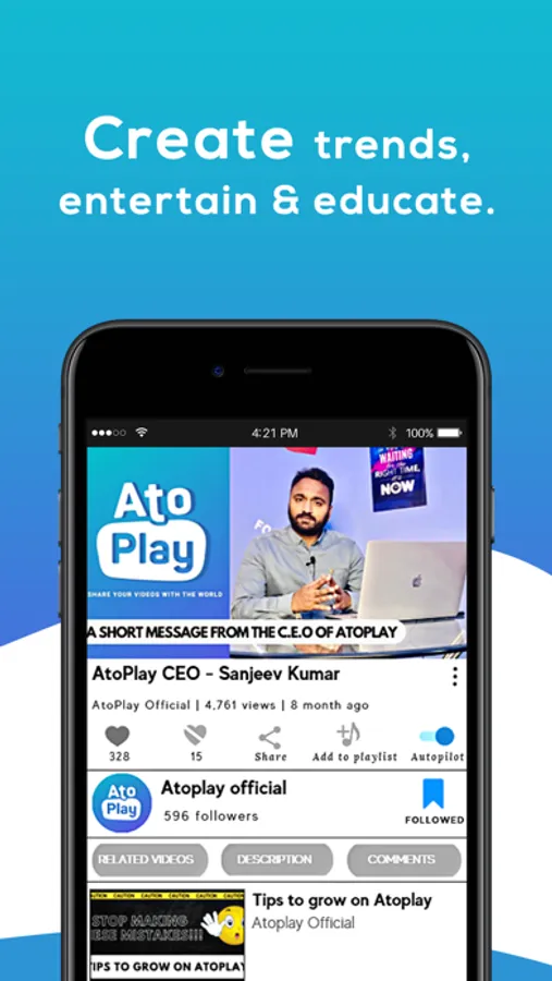 Atoplay is the newest trending video sharing platform for you! We have various content, ranging from funny videos, news, gaming, food, to education and motivation. We are a fast-growing video sharing network that allows you to share and monetize your videos easily to viewers all over the world! As viewers, you can also enjoy awesome entertaining videos for free whenever and wherever you are.
