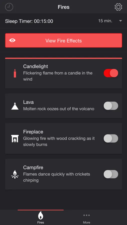 Simulate a fire on your smart device. Relax and fall fast asleep to the sounds of a fire. The screen glows and flickers.