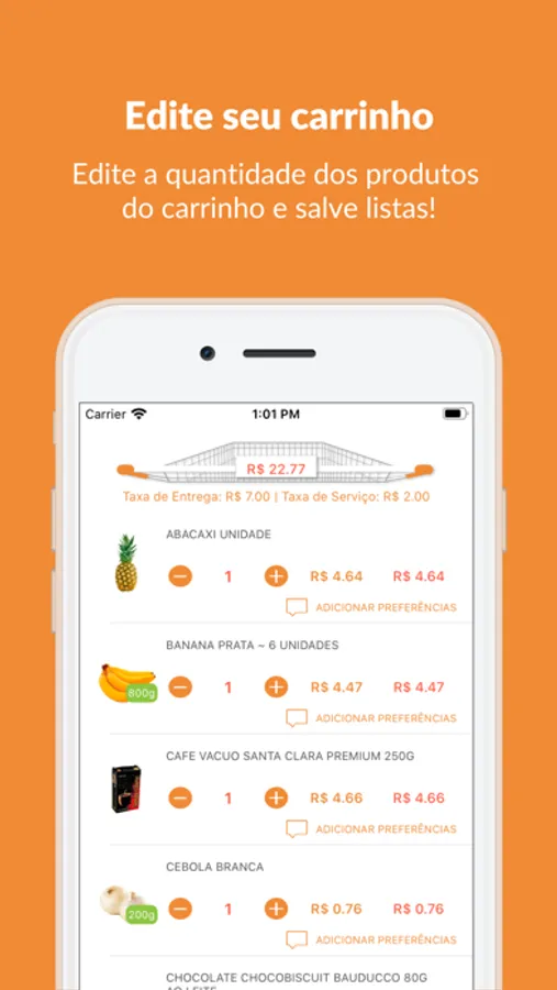 • Adicionar produtos no seu carrinho com um simples tocar e arrastar.