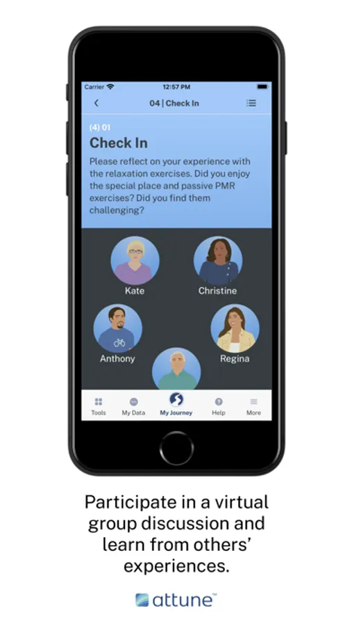 Delivered via a mobile app, attune™ is a digital version of Cognitive Behavioral Stress Management (CBSM), a behavioral intervention that has been used and studied extensively in cancer patients for over 20 years. Attune™ provides cognitive behavioral therapy, relaxation therapy, stress management techniques and coping strategies as an adjunct to other medical treatments for adult cancer patients.
