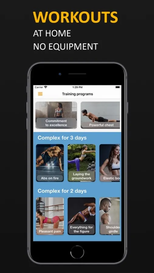 You will find a large selection of effective programs for different purposes: weight loss, beautiful abs and waist, body preparation, strength increase, cardio and many other unique types of training.