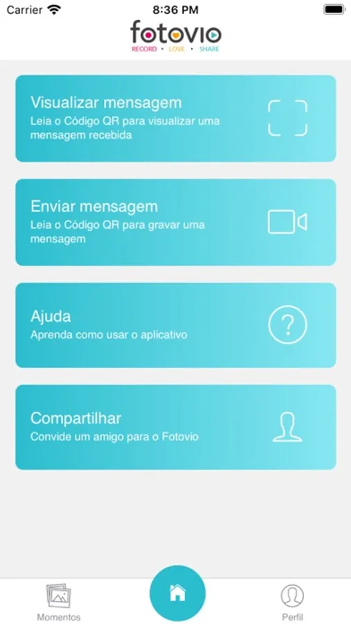Baixe grátis o Aplicativo Fotovio em seu smartphone. Cadastre-se e então, vá para a leitura do QR Code.