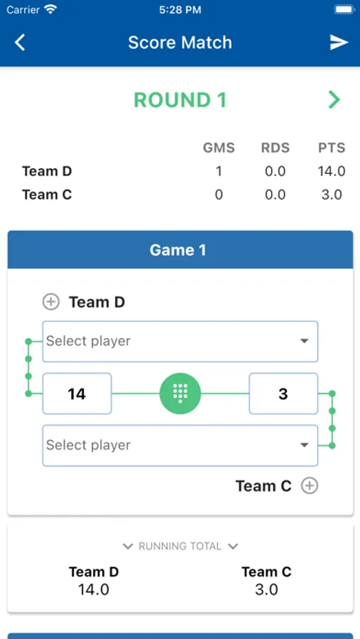 • When scoring a game, tap the scoring box for the winning player. Tap the button(s) to indicate they won then tap the losing player's scoring box and set their score.