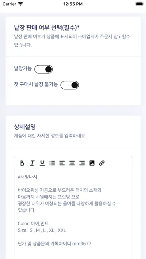 상세 정보를 잘 입력하실수록 소매 사장님들의 구매가 많아집니다.