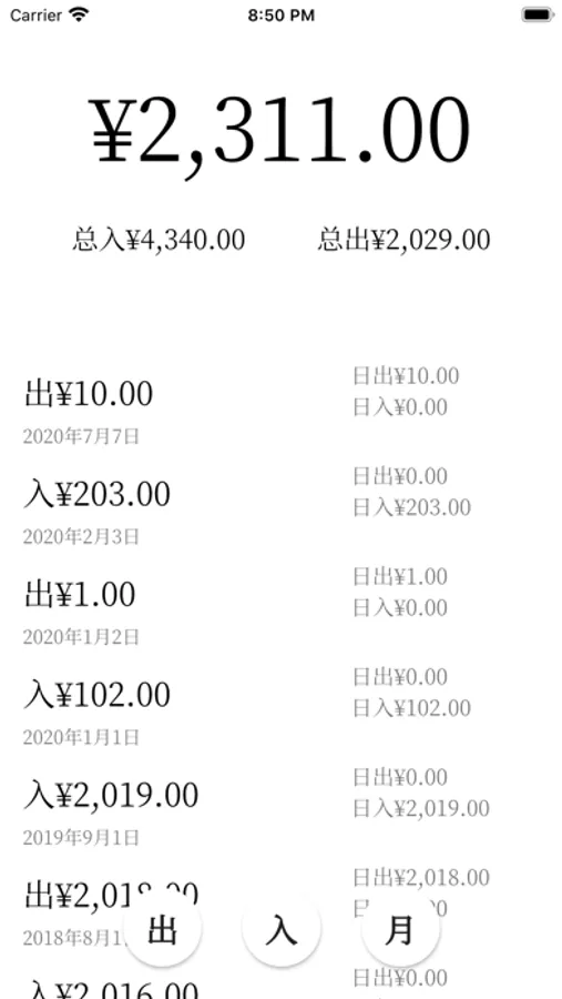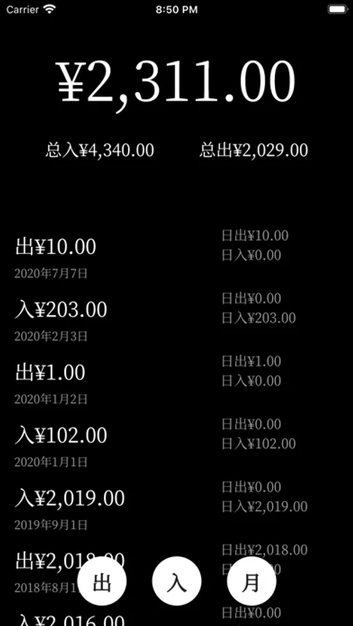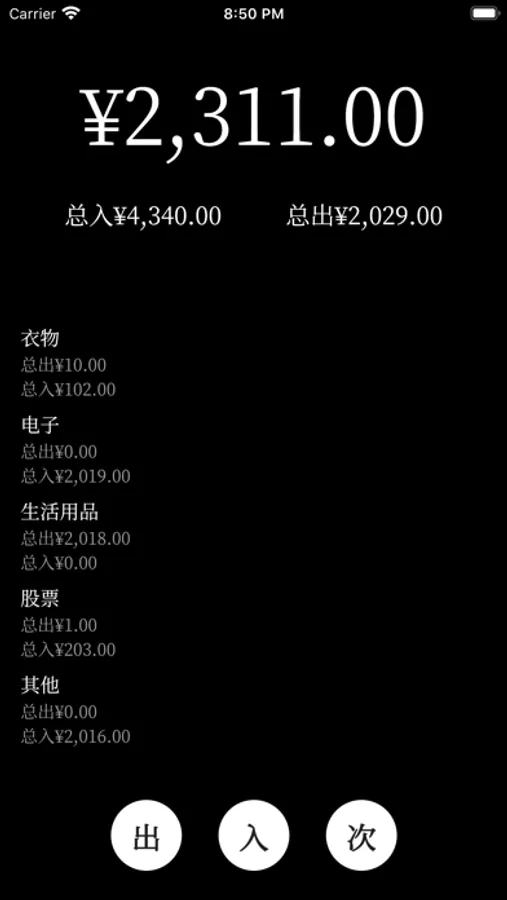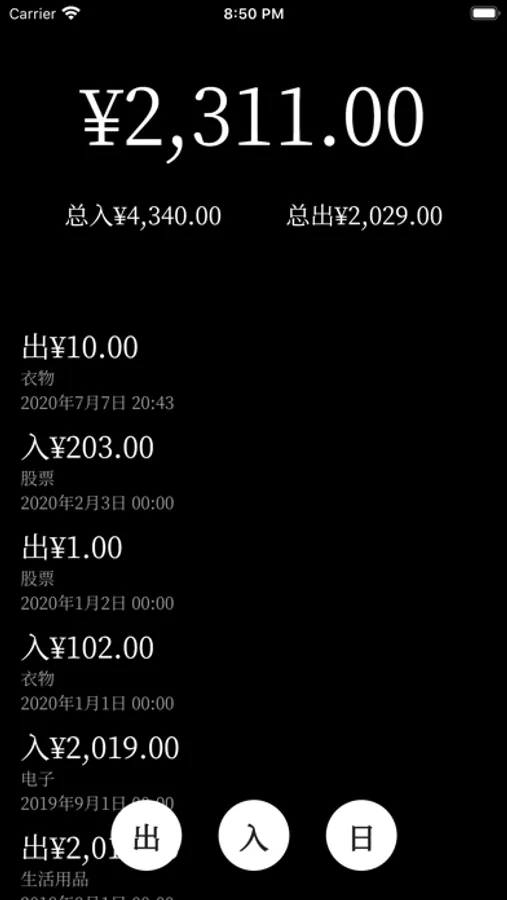 出入 是一款简易的记账软件,你可以通过它来记录自己的每日开销。