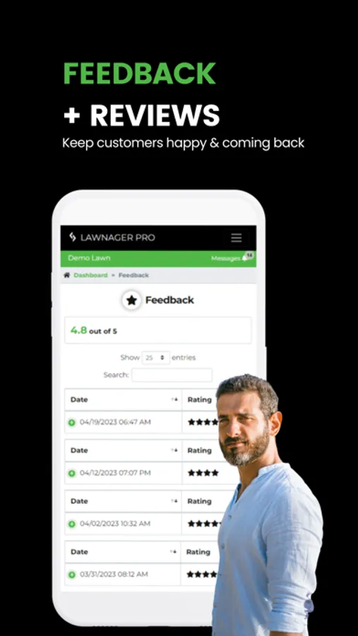 Lawnager provides simple tools to manage your lawn care and landscaping business. After downloading the app, create an account, build your profile, invite your customers, schedule, and go! You retain your customers at all times. Plus, we make it simple to automate scheduling, manage crews, review feedback ratings, and get paid quickly. Get started for Free.
