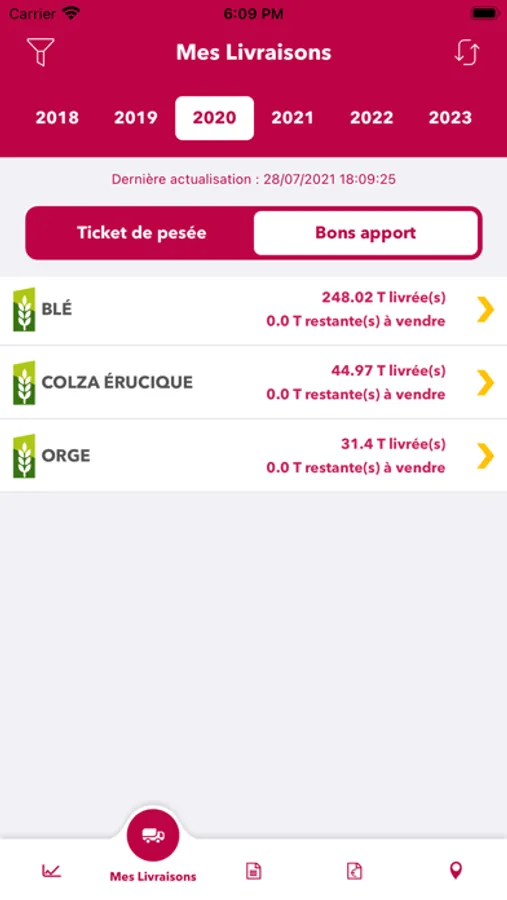 - Mes livraisons : recevez vos tickets de pesée connectée et consultez l’ensemble de vos livraisons