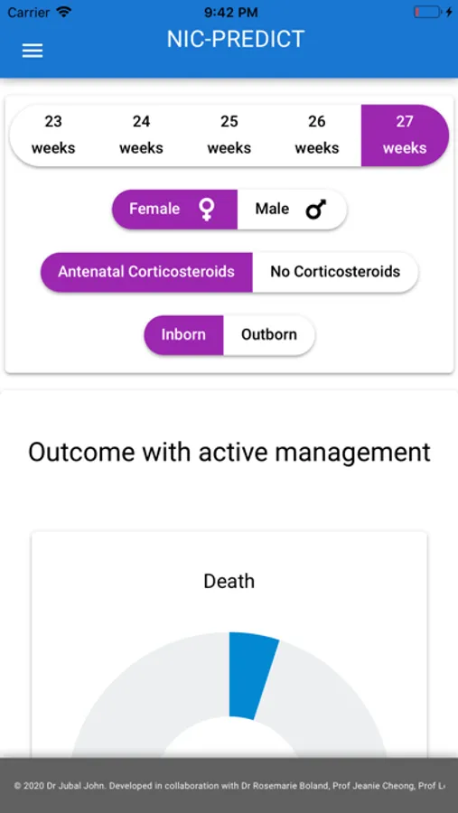 NIC-PREDICT estimates potential outcomes for an infant based on a combination of four perinatal factors. As such, the data generated are more accurate than outcome data based on gestational age alone.