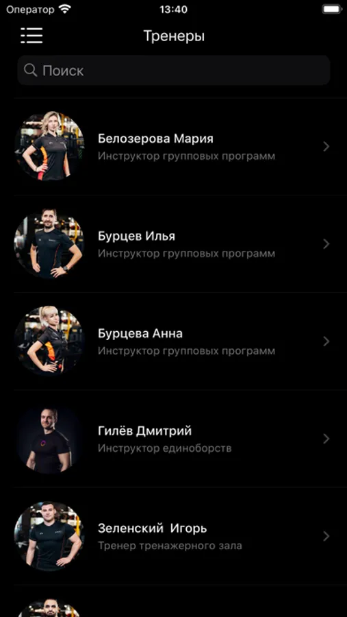 - Ознакомиться с тренерским составом и записаться на персональную тренировку