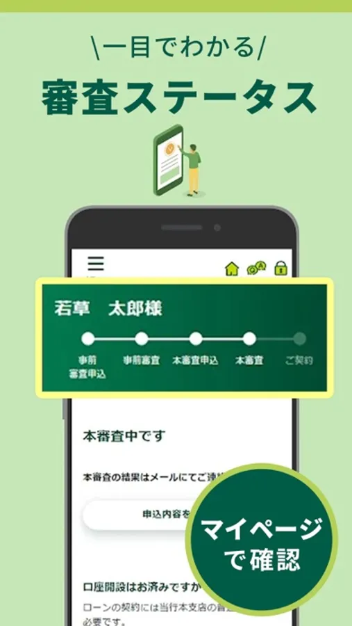 作成いただいたマイページで、事前審査お申込からご契約までのステータスをご確認いただけます。
