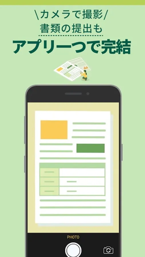 審査に必要な書類をスマートフォンのカメラでその場で撮影し、そのままマイページにアップロードが可能。