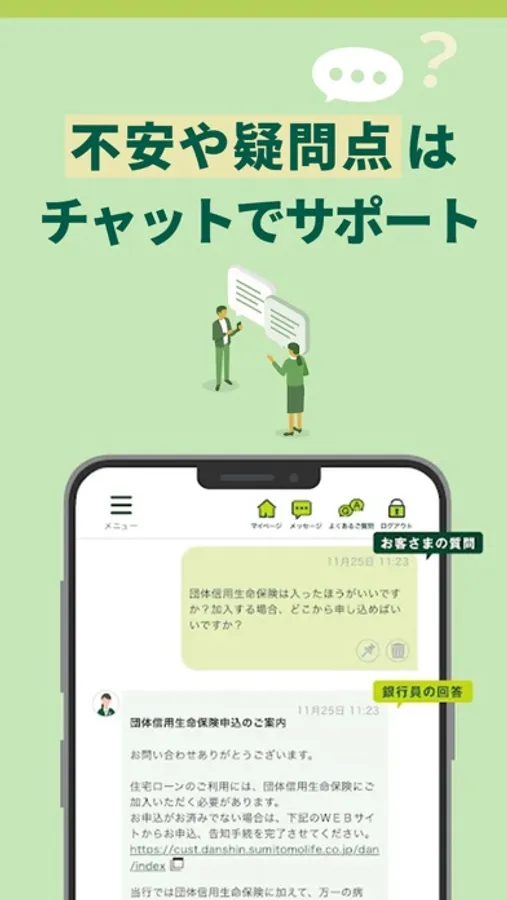 アプリ内のチャットで住宅ローンに関する不安や疑問点をかんたんにお問い合わせいただけます。
