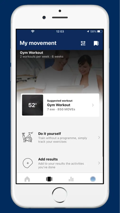 MY MOVEMENT: What you’ve chosen to do: here you will find your programme, classes you’ve booked, chal-lenges you’ve joined and all the other activities you’ve chosen to do at your facility