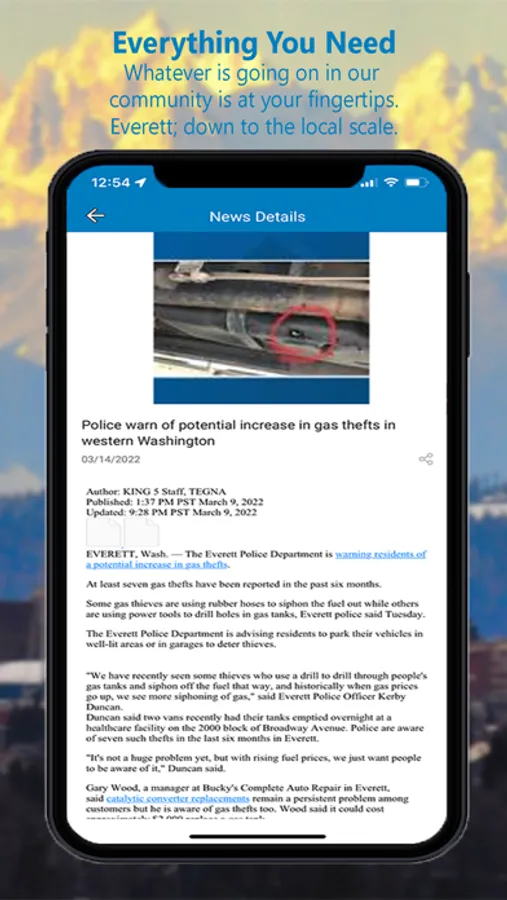 All the scheduled events, venues, news, weather, school alerts, and push notification messages all 100% locally focused will keep you fully informed about everything going on in Everett. All in one, easy-to-use app on your phone at no cost to download.