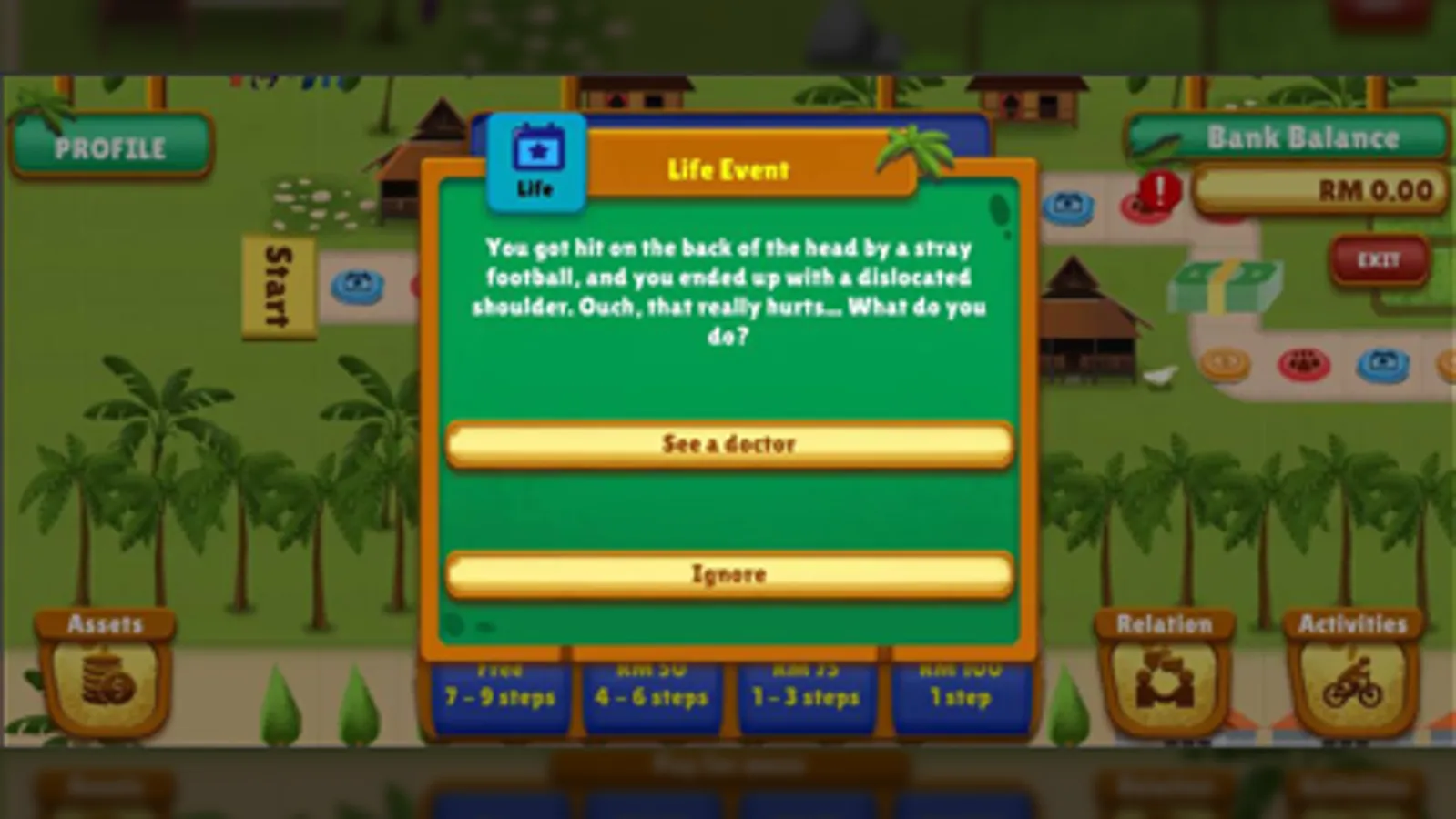 My money journey is a board game that simulates daily life routines that involves making day-to-day decisions as users complete the journey towards the end of the game. This game will make you focus on attaining financial goals while juggling between unexpected social events, maintaining relationships, and choosing the right investment tool. Every moves that you made will either bring you one step closer to the goal or might cost you a penny or two.