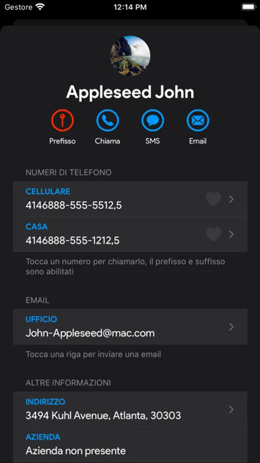 - Puoi aprire le mappe se nel contatto hai inserito un indirizzo