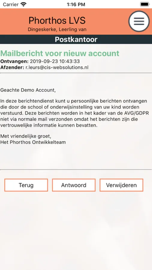Om deze app te kunnen gebruiken heeft u een webportaal-account voor ouders of leerlingen nodig binnen de Phorthos LVS omgeving van de school van uw kind.