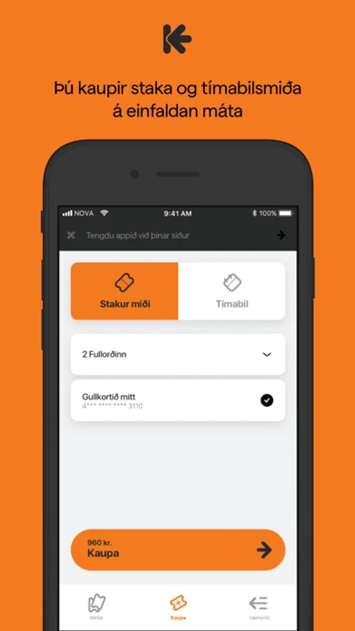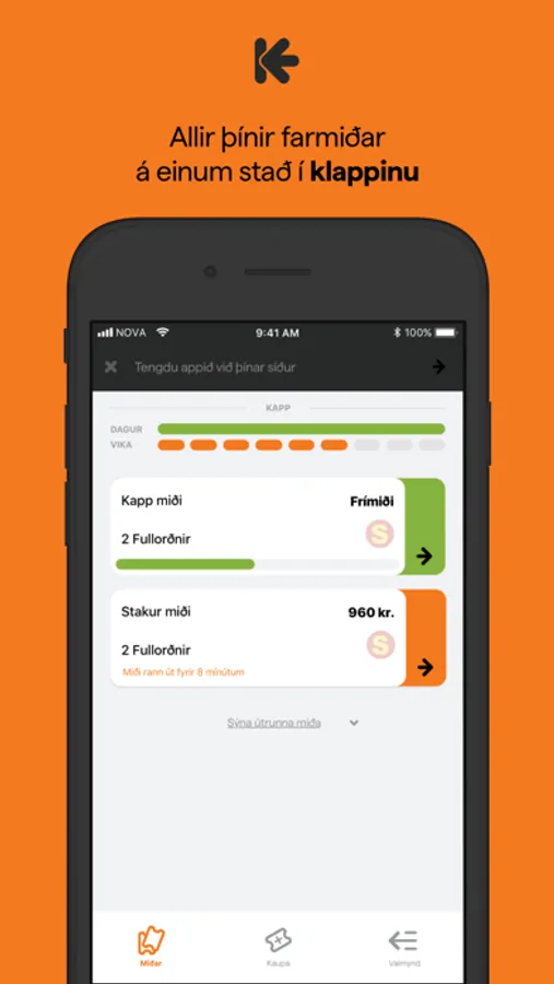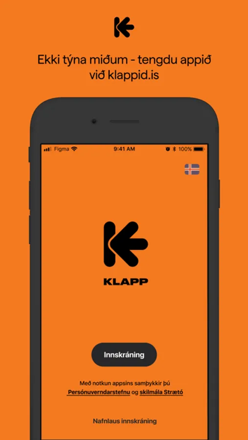 The Klappið app is an official Public transportation payment app, made for Strætó Iceland (the Administrative body for public transportation in the capital area of Iceland). The purpose of the app is to provide payment possibilities of various sorts in public transportation, including single tickets and period passes (such as monthly or yearly passes) for the citizens and guests of Reykjavík. The user can, in the first phase, sign on, register a payment method, purchase a travel media and confirm the purchase by validation in the buses of Strætó.