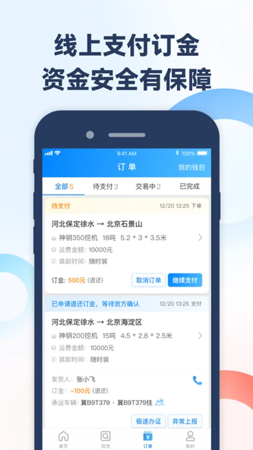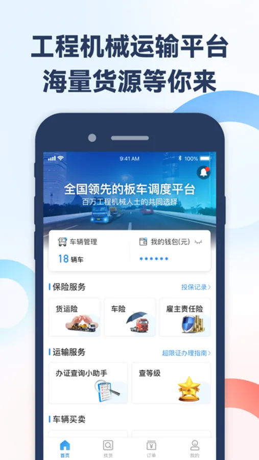 【特运通车主版】-服务全国板车老板、司机和车队,可随时随地找货,涵盖全国所有路线、任意品牌货类,包括挖掘机、装载机、推土机等机械设备,及电力类、化工类、桥梁类等大型设备,设置路线偏好后可快速匹配精准货源;提前预约返程货,做到生意不间断。同时,平台为老板提供增值服务(货运险、放空险、违约保障等),为安全运输保驾护航。