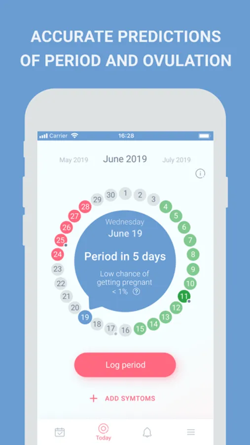 Period predictions are automatically updating based on data you enter providing high accuracy of period predictions even for women with irregular cycles.