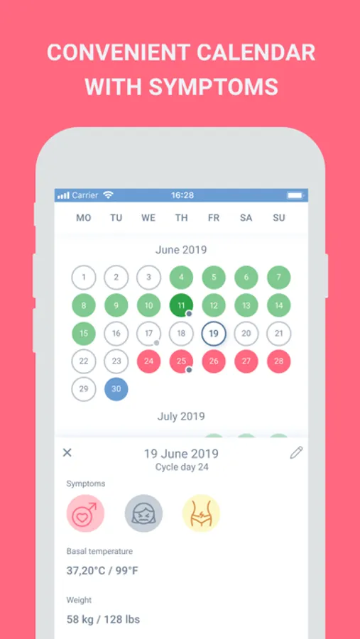It has never been easier to log periods and add symptoms: just a few clicks, and all the information on your condition is saved in Period tracker.