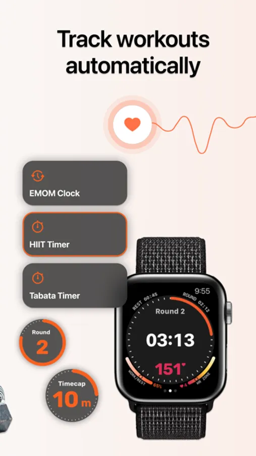 Stay on top of your game with our integrated workout timers on your Apple Watch. Set up AMRAP, EMOM, FOR TIME, or TABATA directly on your watch or create more complex workouts on your phone and sync them with ease.