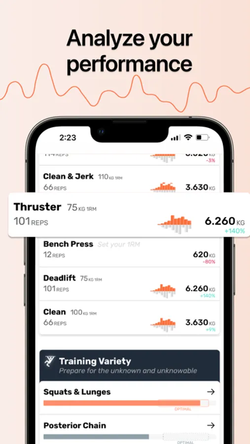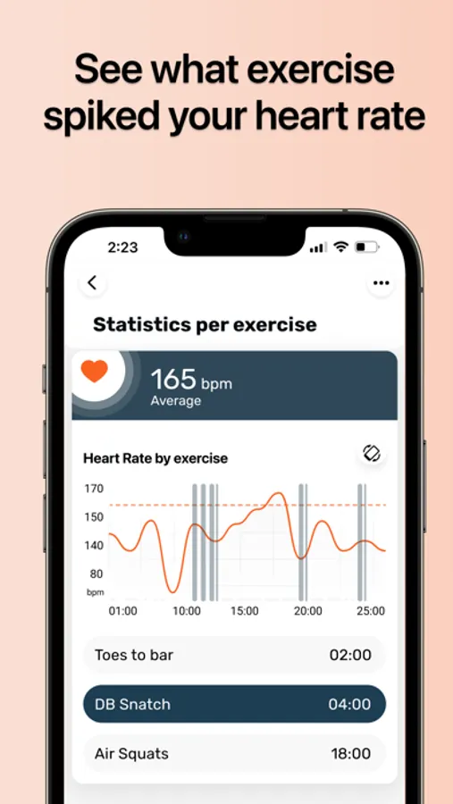 Our cutting-edge technology detects every set and rest period, offering detailed insights on individual sets and reps. View AMRAP round times, EMOM scores, and rep speeds for each exercise with ease.
