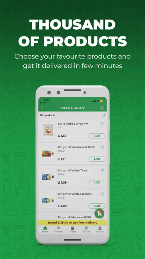 Just has your local supermarket that is on your mobile with over 4000 products delivered right to your door.