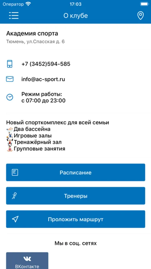 С помощью приложения, вы сможете следить за новостями, расписанием клуба, оперативно получать информацию об изменениях в расписании и специальных предложениях.