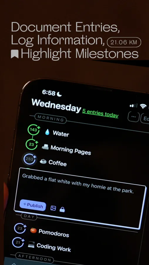Futureland helps you transform your daily routine. It's a unique and fun-to-use tool that combines habit tracking, journaling, and community connection.