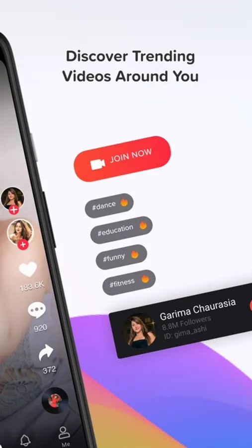 Trending topics on Moj Lite: Beauty, Dance, Lip-sync, Singing, Tech, Cooking, Comedy & Bollywood.