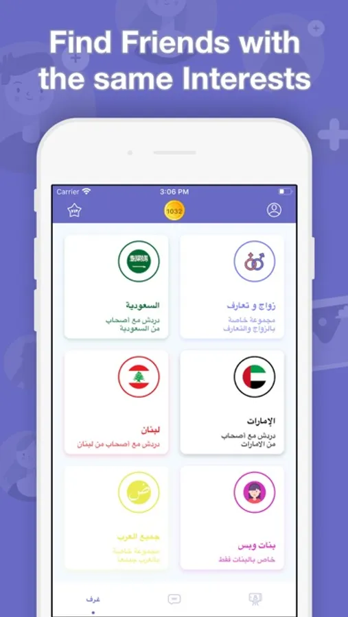 يتضمن التطبيق العديد من الغرف والمجموعات الجاهزة التي تحتوي على الكثير من المستخدمين حيث يمكنك التحدث بشكل جماعي في المجموعة.