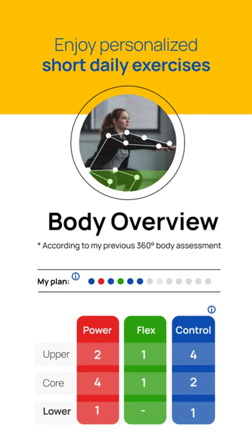 Sency's algorithms evaluate your ability to perform 4 different positions, identifying your body’s strength, core, and flexibility.