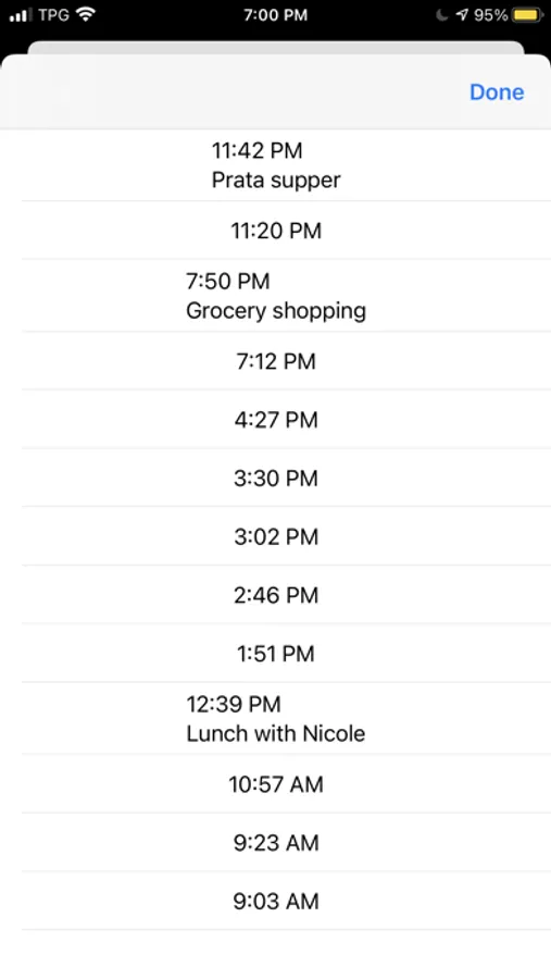 This app attempts to jog your memory and help with occasional little questions like "where did I have lunch last Wednesday" or "what time was it when I met Nicole at the grocery's".