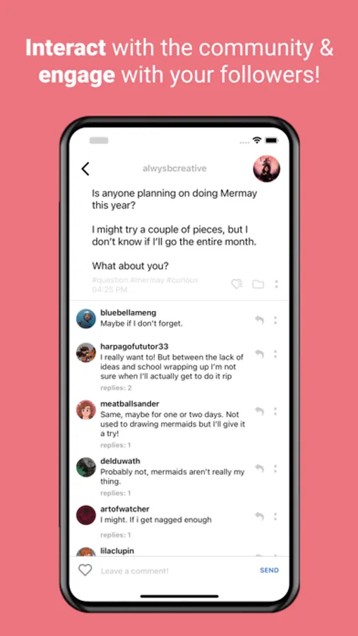 • Our algorithms are weighed on recentness, this means that every artist (both big and small) will have an equal chance of having their posts seen.