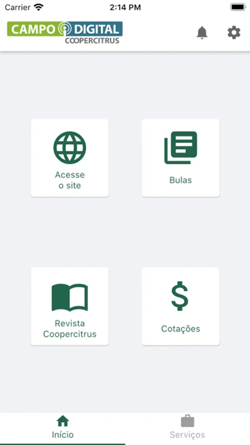 Com o aplicativo "Coopercitrus - Campo Digital" tudo fica mais fácil. Com ele, você pode conferir inúmeras informações em nossa Cooperativa, tais como: Solicitações de Serviços, Bulário, Cotações, Notícias e muito mais.