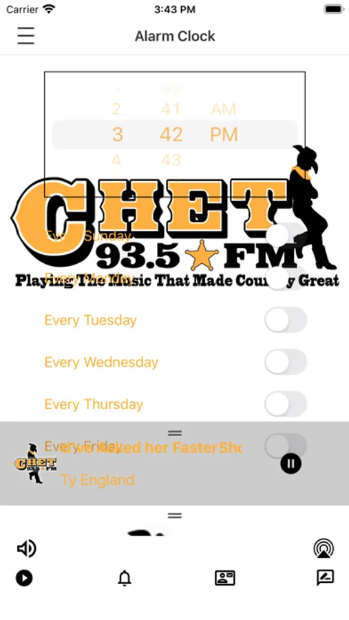 93.5 Chet FM. Playing the music that made country great. Chet is just a good old country boy who wanted to bring the South to the Golden Heart City. He brings his massive record collection to the airwaves every day. Without all those silly DJs yacking, laughing and taking up valuable song time. And the shortest breaks around, you're never far from the next tune. Chet takes you through the ages with all the tunes that made country great, and a few of the newer ones that are keeping country great.