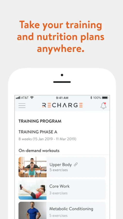 From hundreds of exercises in the exercise library, to health data tracking, you’ll have complete control of your health narrative with the RECHARGE: Sustainable Health app.