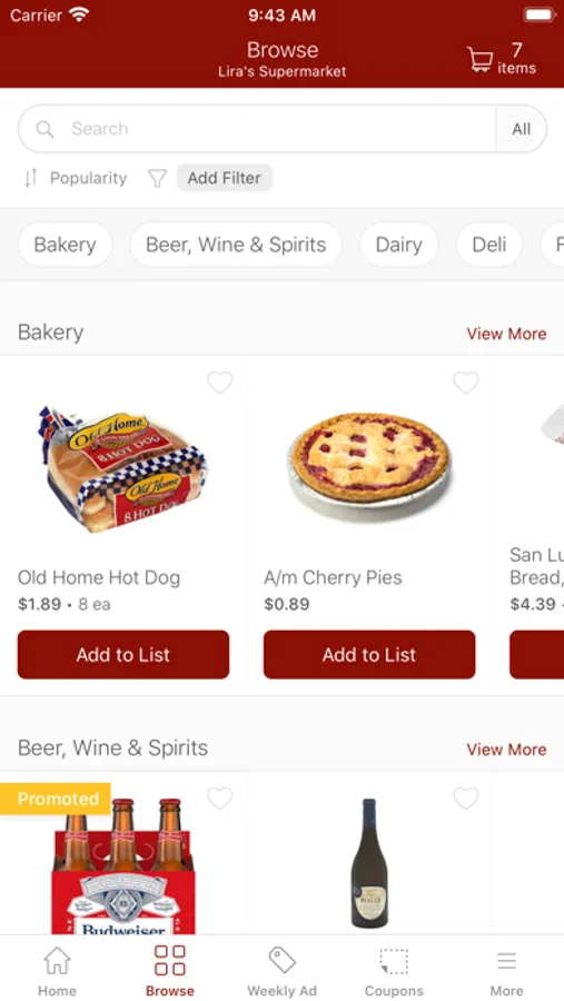 Order groceries from Lira's Supermarket and get the same prices available in-store, including all sales, special offers, and reward specials. Scan products in your pantry to build your lists, saving you time and making sure you get the same products, even when having the store shop your order. Your order will be selected by personal shoppers who are trained and committed to giving you the best produce, meat, deli, and other items. Use your past orders to quickly select and order your groceries, leveraging your favorites, order history, and recommended items. Just browse the weekly ad or the entire store, select your items, and order for pickup or delivery. View information about products including pictures, descriptions, ingredients, and nutritional information.