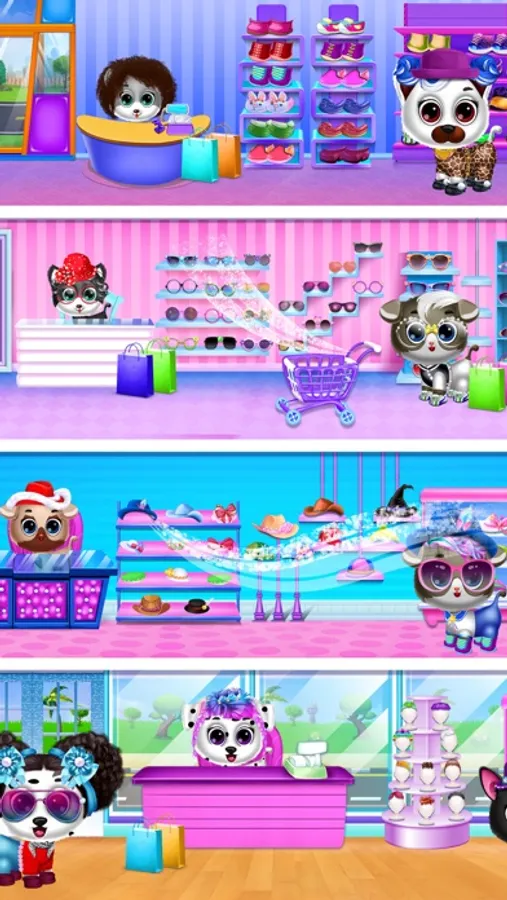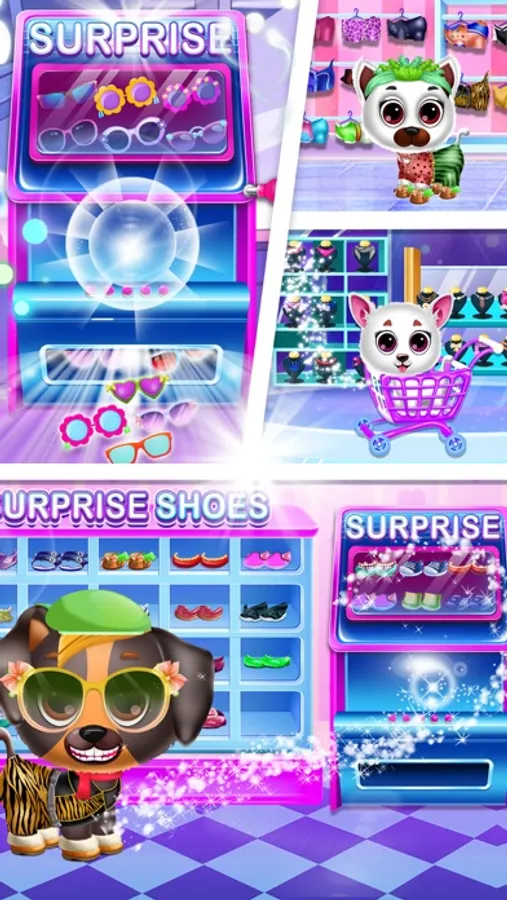 It is easy and fun to play. Just walk around the city swiping screen right to left, when you see a nice store just tap on store to enter. Once inside store say hello to Puppy owners! : ) To the right you have the items sections, just tap any item you like to change dress Puppy. You can always chose other item or tap on the blinking item to undress puppy. To the left of the store you will see the SURPRISE machines! There you will have to tap on machine to get your surprises. Good luck!