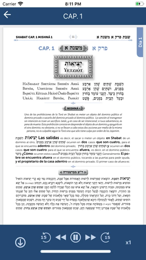 Podrás estudiar cada Mishna guiada por un audio con la explicación y comentarios en Español.